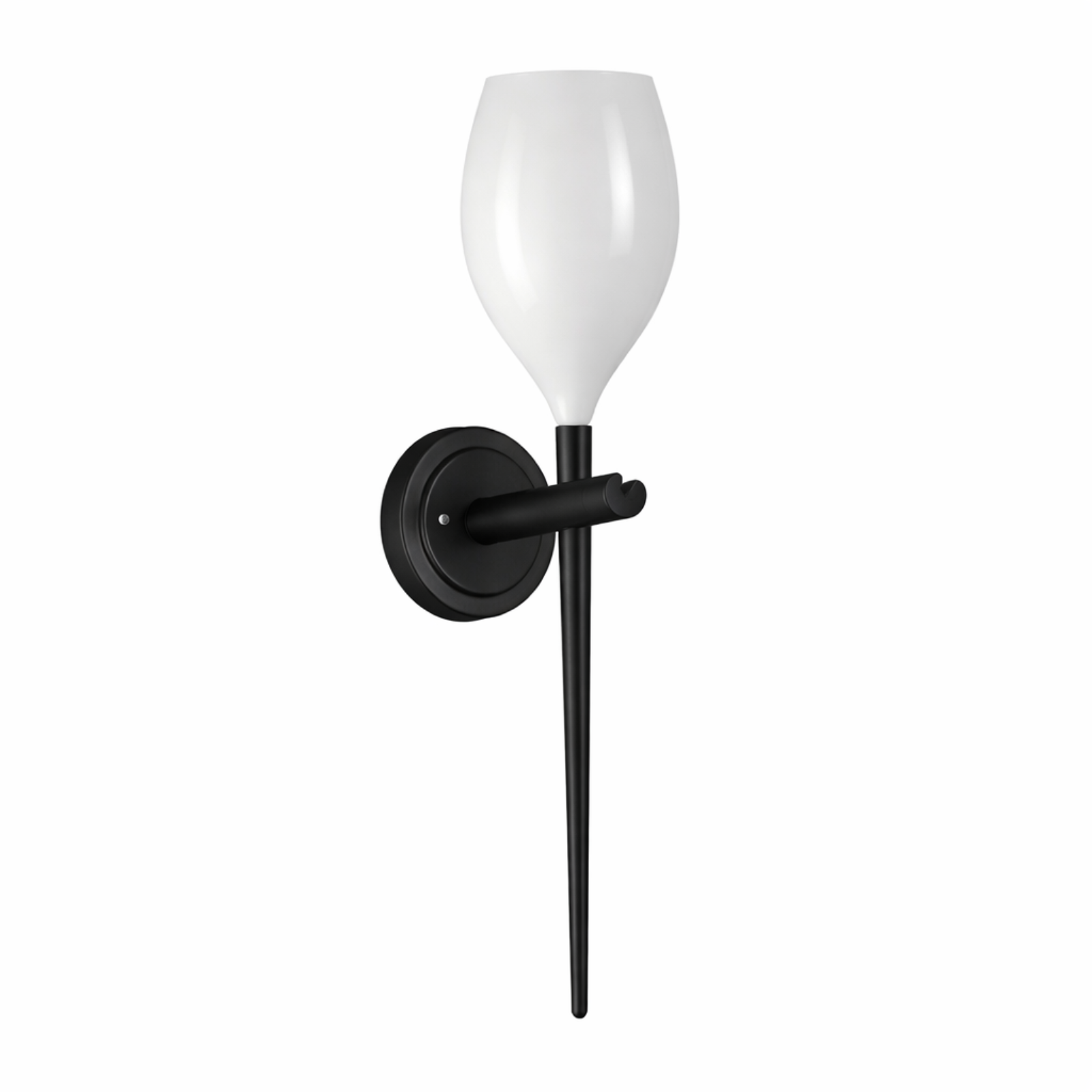 Aplica de perete IZZA WALL cu abajur din sticlă alb mat și bază neagră mată, soclu G4, putere maximă 20 W și protecție IP20. Design modern potrivit pentru living, hol, dormitor sau birou. Bec neinclus.