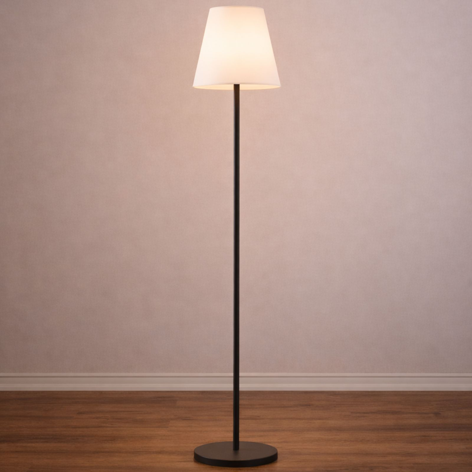 Lampadar HAVANA FLOOR în combinația negru–alb, realizat din metal și plastic, soclu E27, protecție IP44 și cablu de 300 cm. Potrivit pentru living, dormitor sau terase acoperite. Bec neinclus.