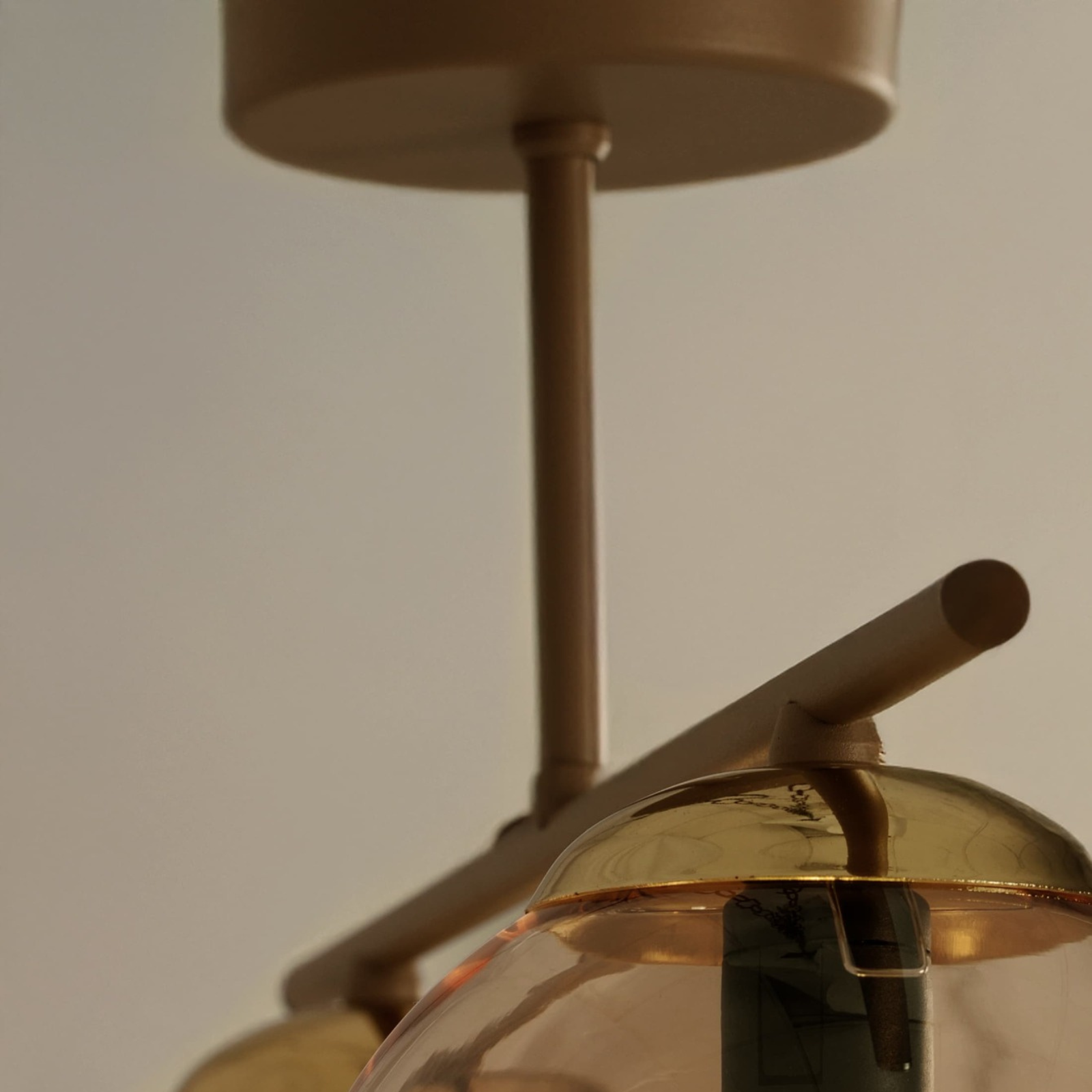 Plafonieră K-5781 FELIX, 2xE14, abajururi sticlă chihlimbar-bej, design compact și modern, ideală pentru hol sau dormitor.