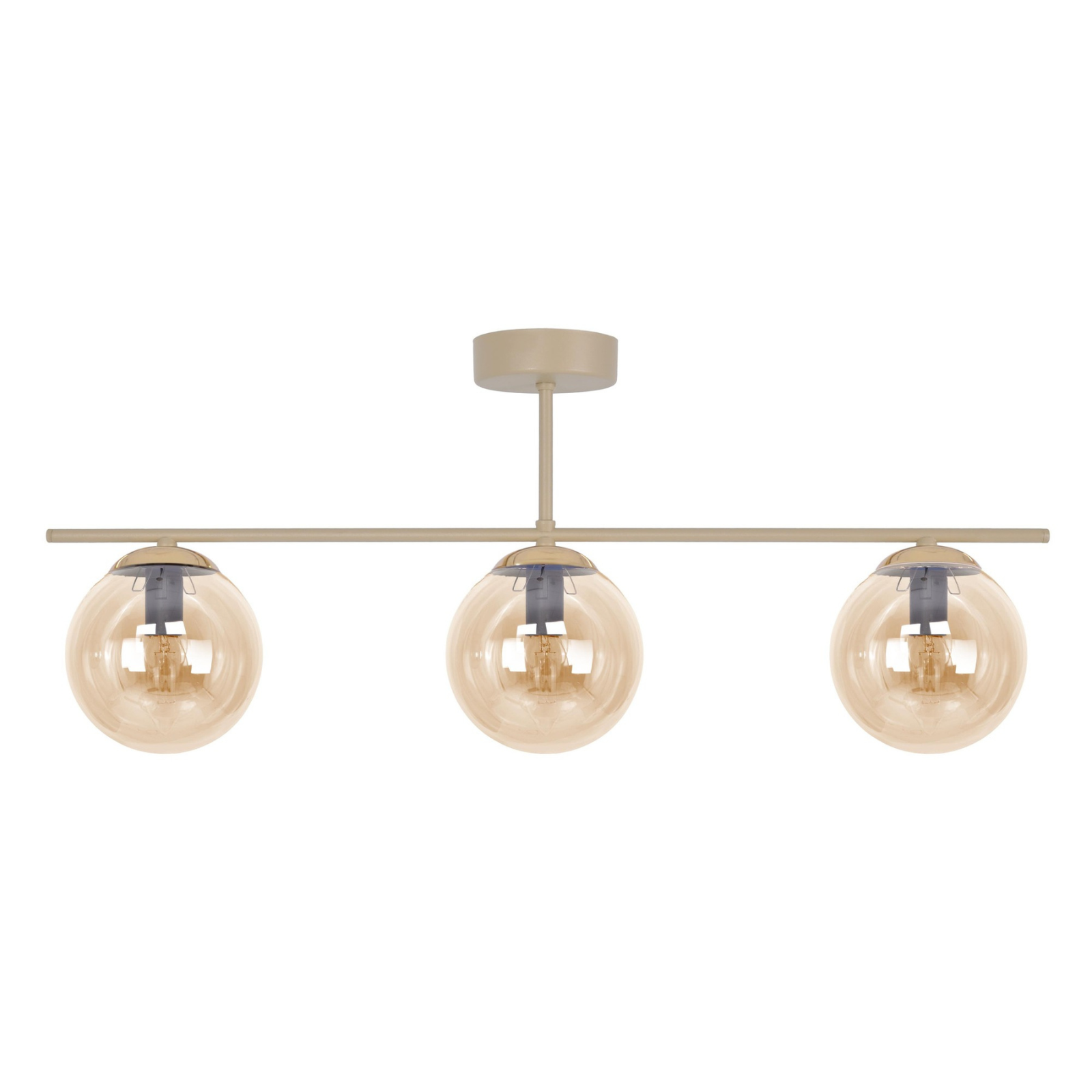 Plafonieră K-5782 FELIX, 3xE14, abajururi sticlă chihlimbar-bej, design modern și compact, ideală pentru living, dormitor sau hol.