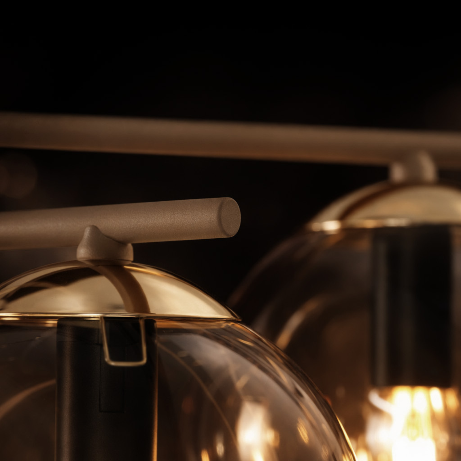 Designul elegant, cu structură metalică și accente aurii, permite integrarea ușoară în interioare moderne sau clasice. Forma compactă și proporțiile echilibrate o fac potrivită pentru spații cu tavane standard, adăugând un accent de stil.