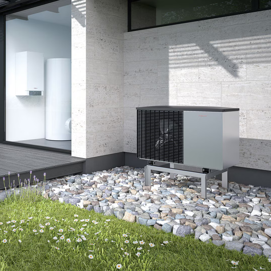 Pompa de căldură cu sursă de aer Vitocal 200-S utilizează căldura disponibilă gratuit în aerul exterior. Acest lucru garantează o alimentare cu căldură rentabilă și responsabilă din punct de vedere ecologic. Opțional, puteți utiliza pompa de căldură și pentru răcire în timpul verii.